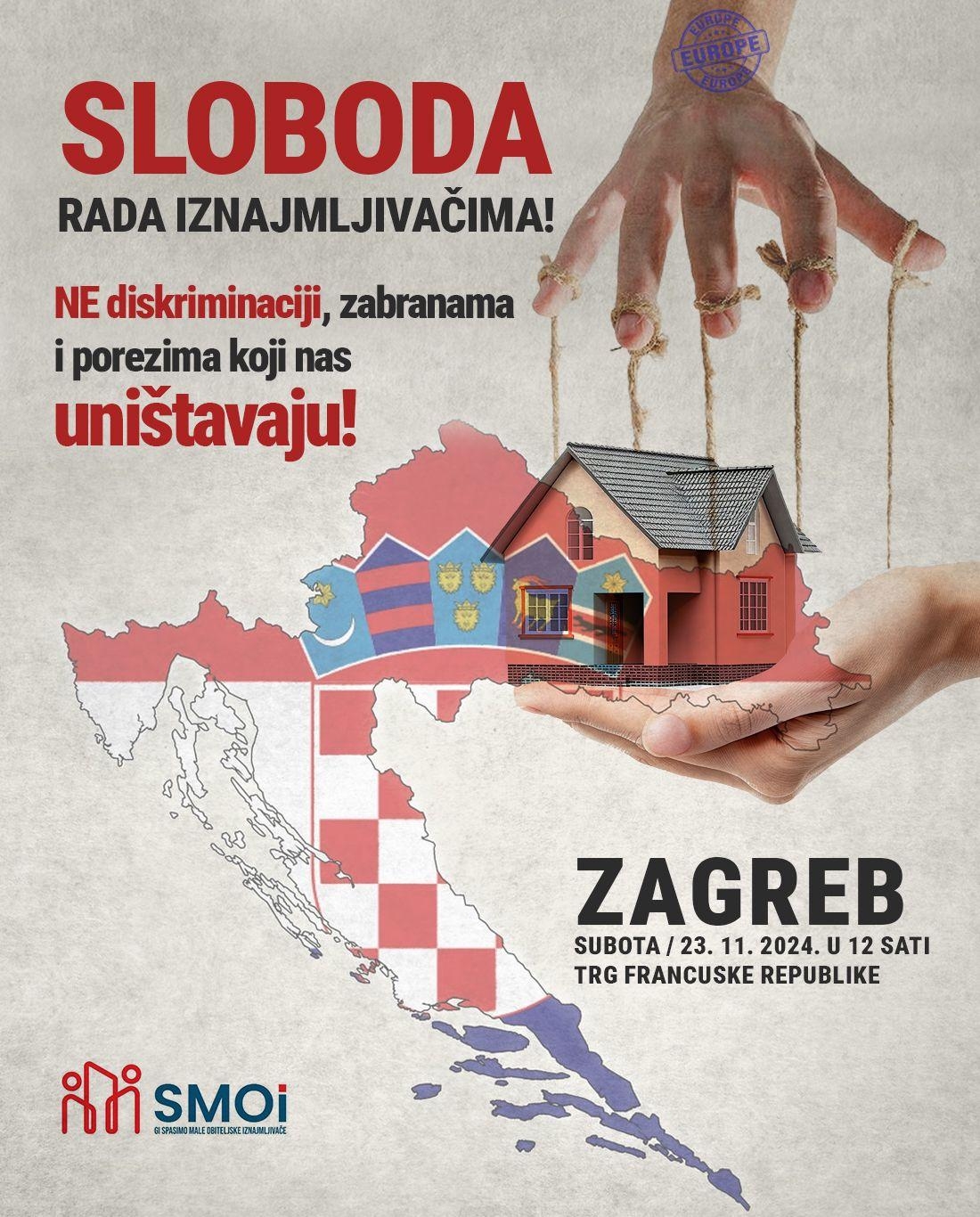 Građanska inicijativa „Spasimo male obiteljske iznajmljivače“ održala skup nezadovoljstva na Trgu Francuske Republike u Zagrebu.